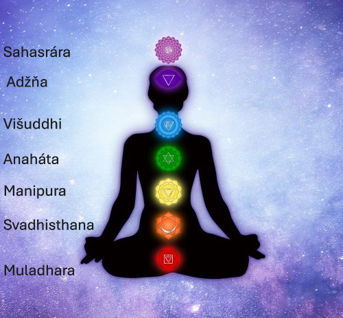 ČAKRA – v sanskrtu znamená "kolo". Otáčivý pohyb těchto "kol" způsobuje, že energie je vtahována do nitra čaker. Když se změní směr otáčivého pohybu, energie proudí z čaker ven. Čakry většiny lidí mají průměr asi 10 cm. V každém centru energie jsou vibrace všech druhů barev, avšak jedna barva (odpovídající hlavní funkci této čakry) vždy dominuje....